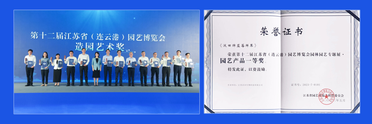 沃田集團榮獲第十二屆江蘇省園藝博覽會一等獎