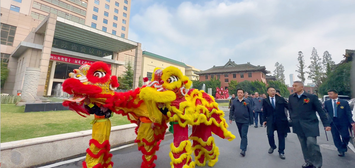 喜慶的雄獅舞表演點(diǎn)燃了開業(yè)儀式的熱情,集團(tuán)總經(jīng)理劉偉先生、贛榆區(qū)委副書記杜其松先生分別致辭。集團(tuán)董事長(zhǎng)徐燁女士、杜其松先生、施季森教授、于洪軍先生、戴深宇先生、吳曉蕾女士一同上臺(tái)參加了剪彩儀式。